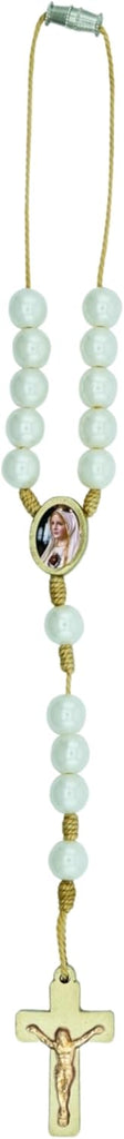 Our Lady of Fatima Car Rosary – Simulated 8mm Plastic Pearl Beads with Gold tone Crucifx